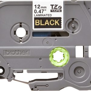 Brother TZe334 Cinta Laminada Original de Etiquetas – Texto dorado sobre fondo negro – Ancho 12mm x 8 metros
