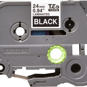 AgotadoBrother TZe355 Cinta Laminada Generica de Etiquetas – Texto blanco sobre fondo negro – Ancho 24mm x 8 metros